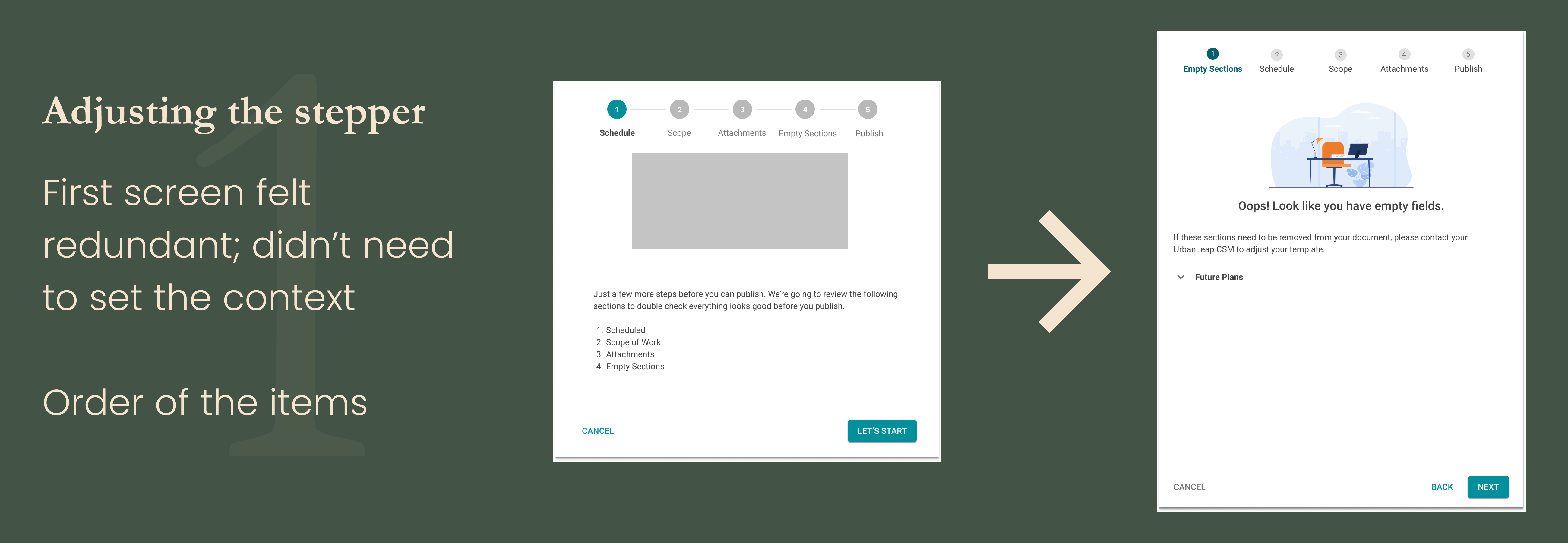 The Product Manager and I thematically separated the data we collected on the most frequent user mistakes as told by vendors and CS. Five thematic errors surfaced, but no one error seemed to be the issue. Facing a dead-end, we took a step back and identified the overarching theme running through all of these mistakes was the failure to review closely before publishing.